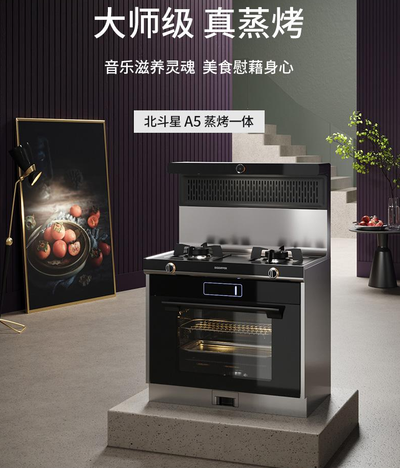 北斗星A5蒸烤一體集成灶打破傳統(tǒng)油煙機的固有形態(tài),在外形上更加美觀大方,極易融入不同風格的廚房。另外還從源頭上解放頭頂?shù)奈恢茫€給吊柜,讓廚房整體裝修統(tǒng)一和諧。