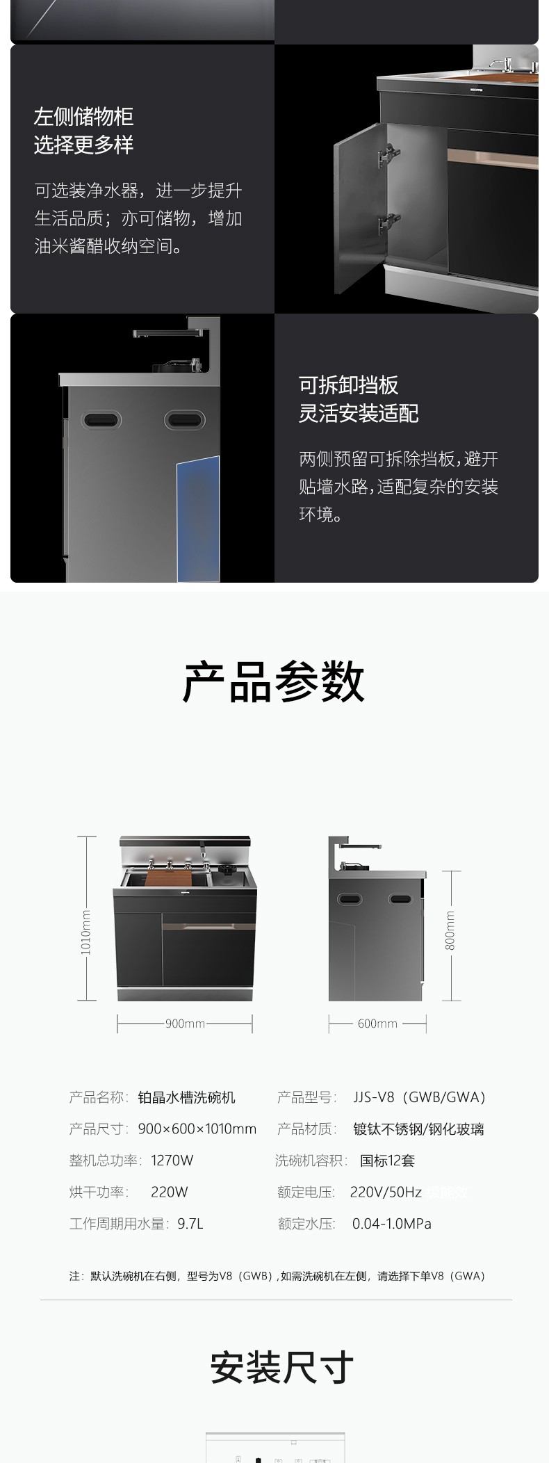 V8集成水槽洗碗機